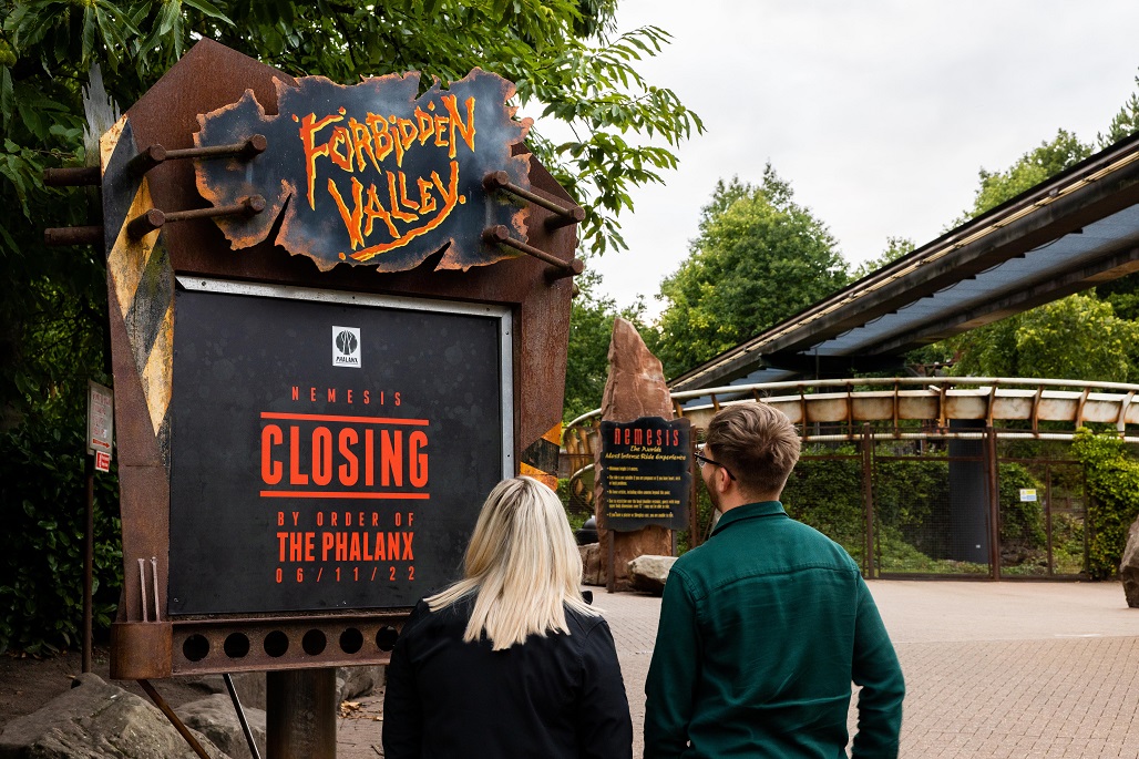 Visitors were notified about the plans after posters appeared on park announcing the closure by order of the Phalanx, a fictional organisation 'assembled to control the alien Nemesis beast by laying the roller coaster track over it' back in 1994.