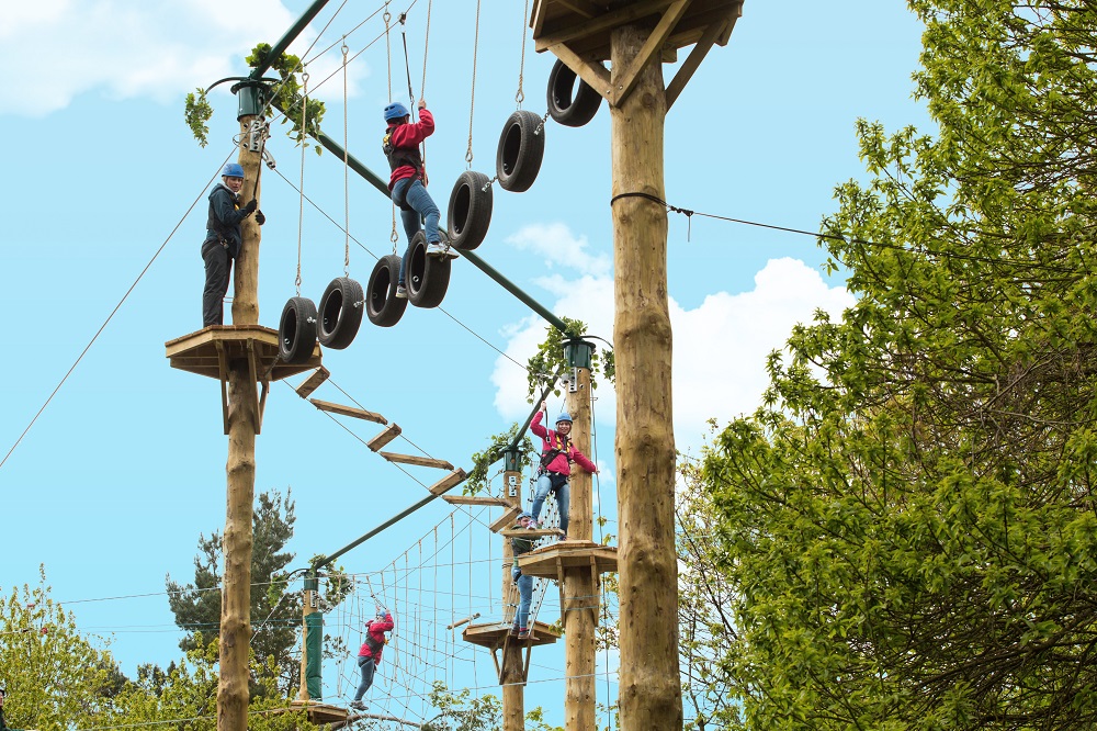 On the higher 'Challenger' course, set 8 metres from the ground, guests must tackle 19 tree-top obstacles including swing tyres, stepping stones and rope bridges before hurtling back to earth on a thrilling 85m zip wire. Tickets cost £24 for this 60-minute course.