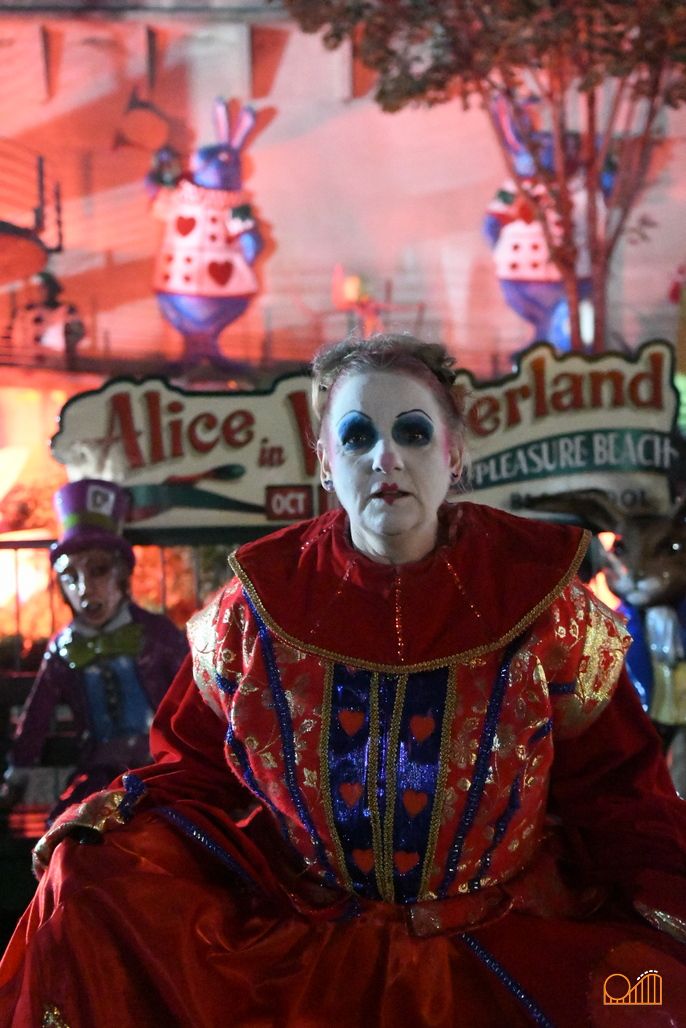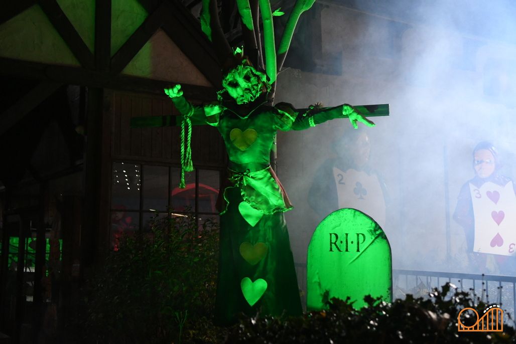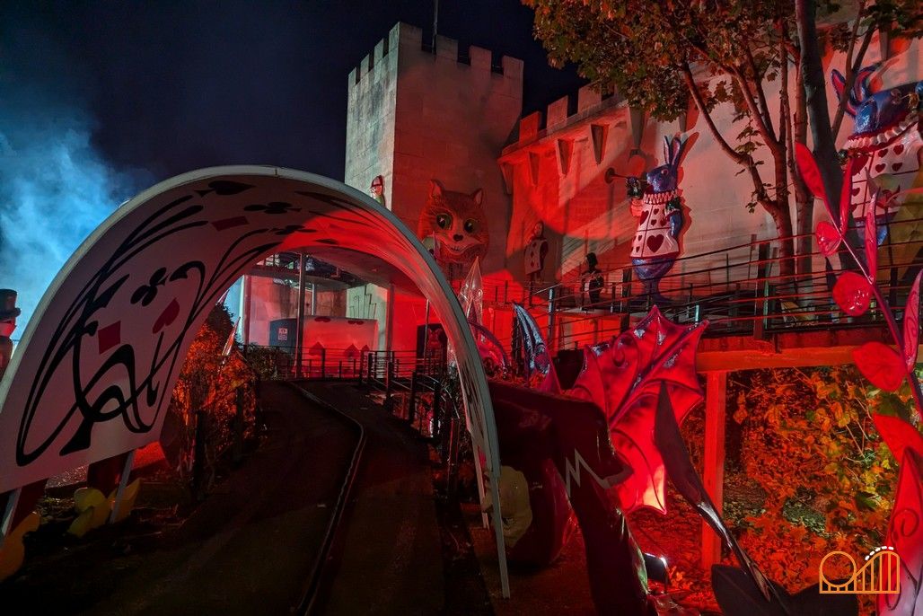 Much like the adjacent Ghost Train, this classic ride provides the perfect backdrop for a very special Halloween overlay. Alice's Adventures in Wonderland is a weird and trippy story full of surreal encounters, so all of that is dialled up for the Down the Rabbit Hole scare zone.
