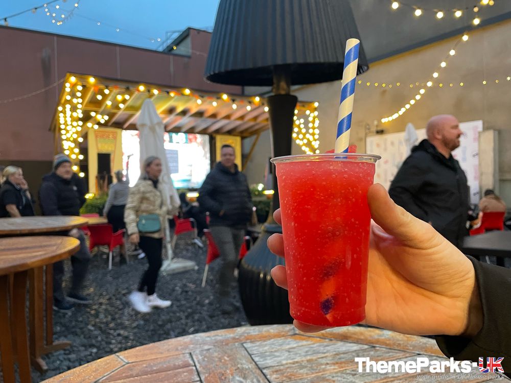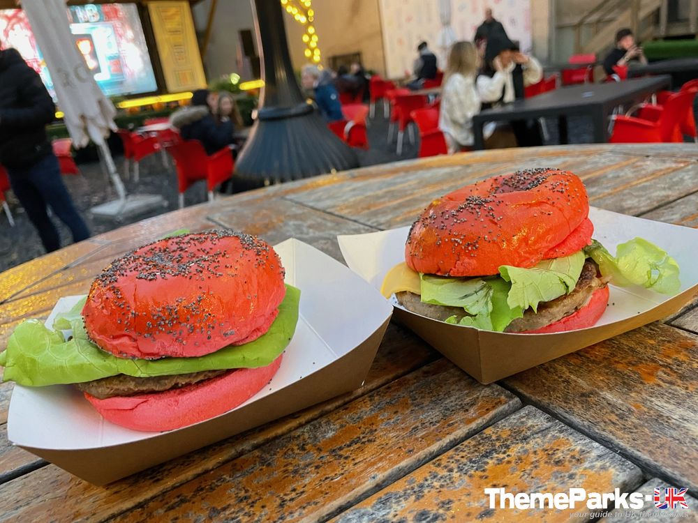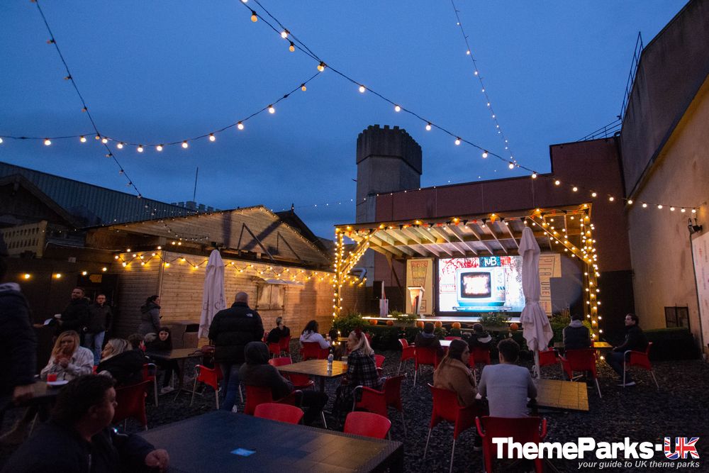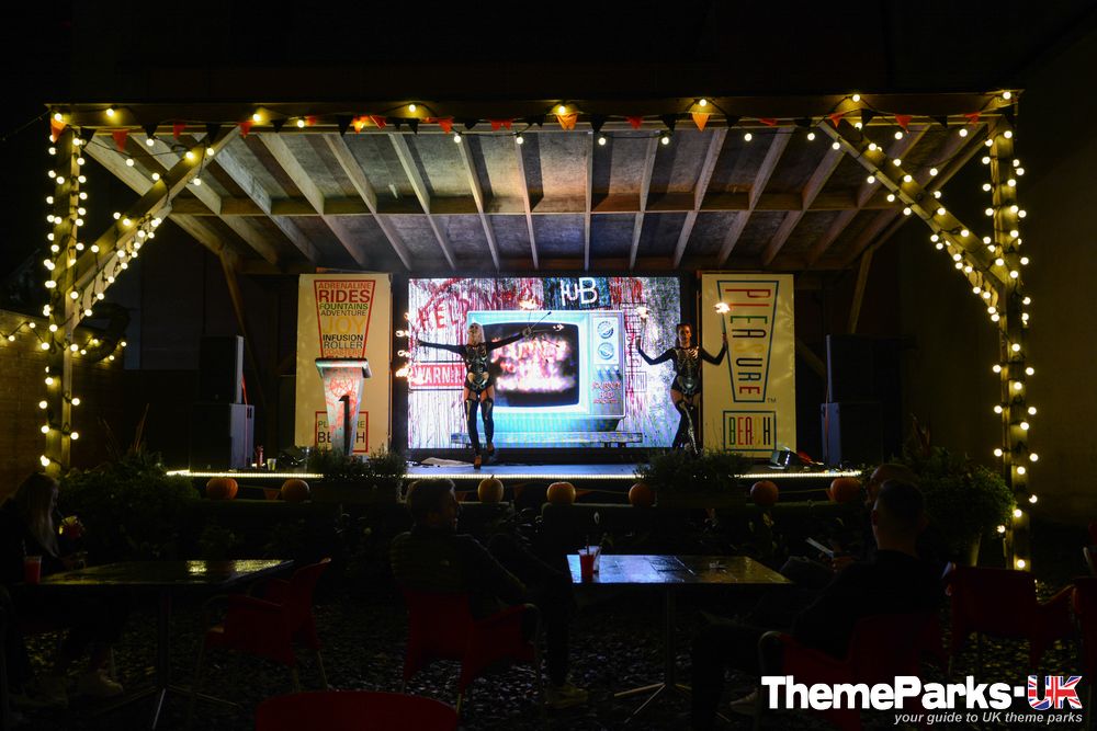 Our evening began by entering The Hub, where we were greeted with blood red cocktails (alcoholic), blood burgers and other spooky treats such as cakes and biscuits. The decoration in this area is done well with festoon lights and plenty of seating in front of the main stage, providing a welcoming start to our experience.