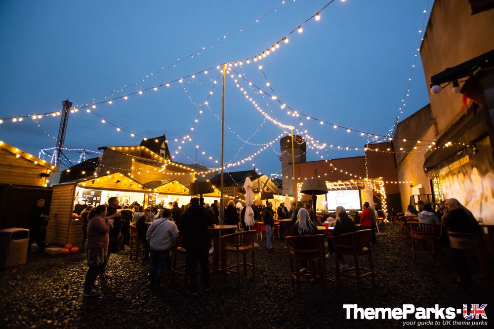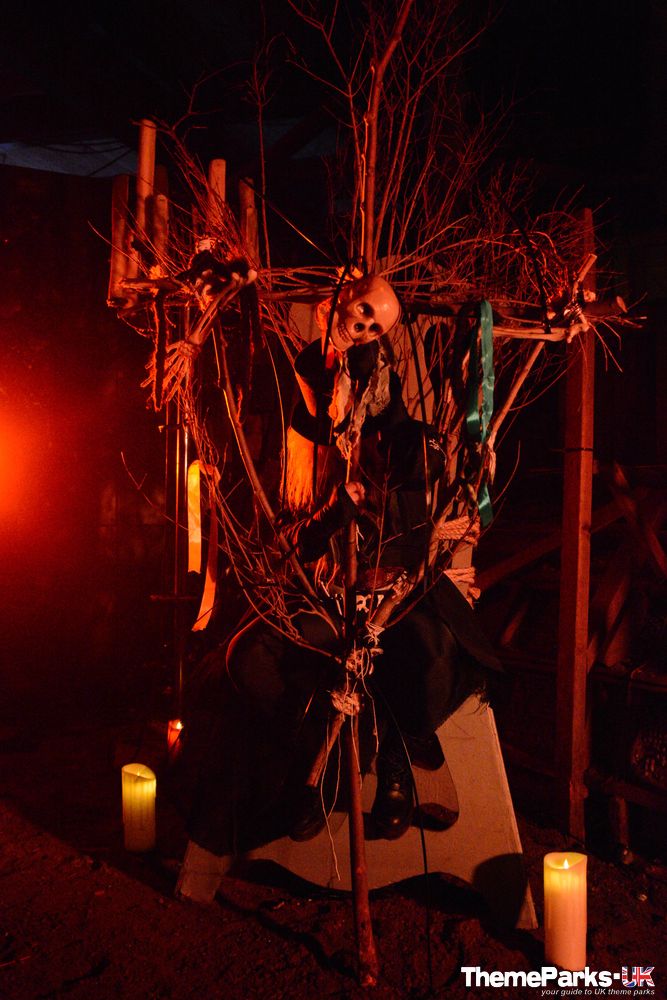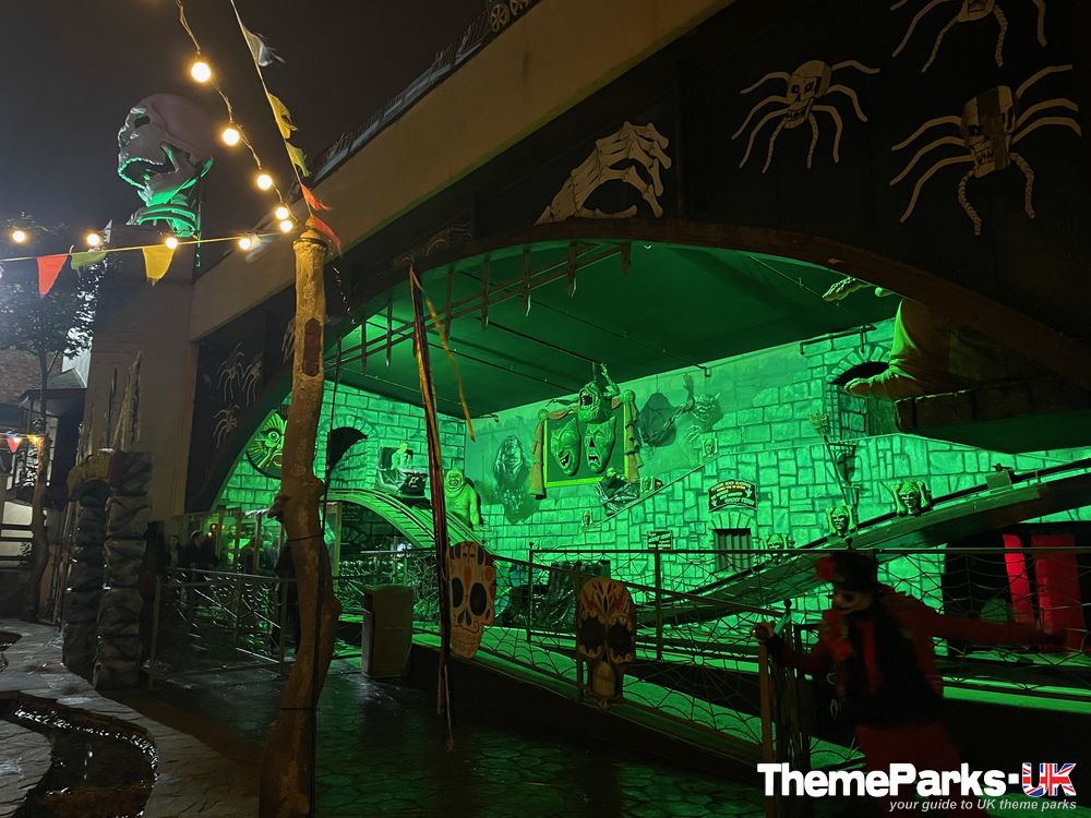 On exiting the boats guests are directed into the Hell Tunnels, a usually off-limits part of the park which brings with it some interest. This large-scale scare zone features a number of different sets and long walkways with plenty of actors providing jump scares at every turn. It was clear that there was a mash up of different themes throughout this area but each was done to a good standard. We particularly liked the butchers scene where selected guests are urged to eat a piece of human anatomy before being allowed to continue with their journey. Unfortunately for us – we were selected!