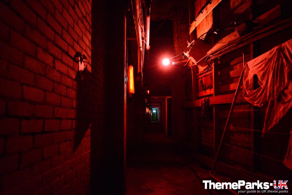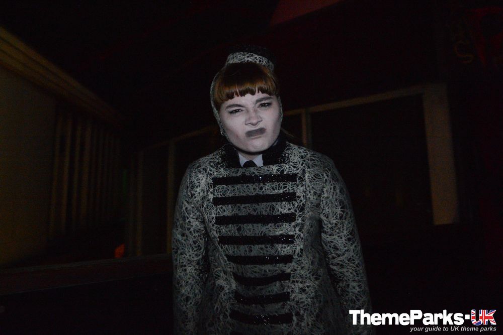 After breaking out of the Hell Tunnels alive, we were ordered up a flight of stairs to queue for the next feature. The quality of the costumes continued at the stage, however (and although warned before) they were clearly taking great delight in swearing at guests. An effective pre-show was next where we were greeted by an evil seamstress who was hell bent on making her next fashion accessories out of us!