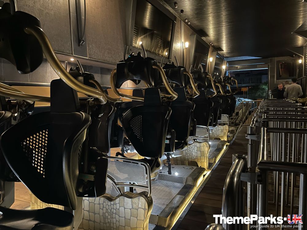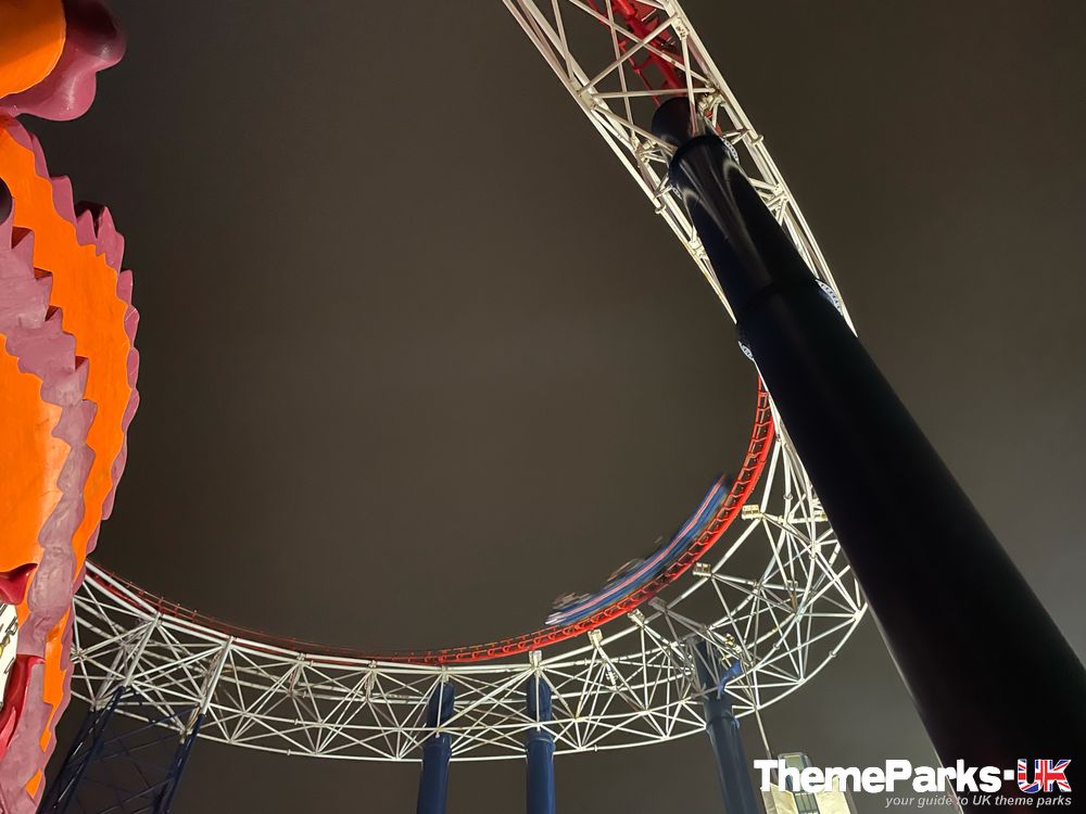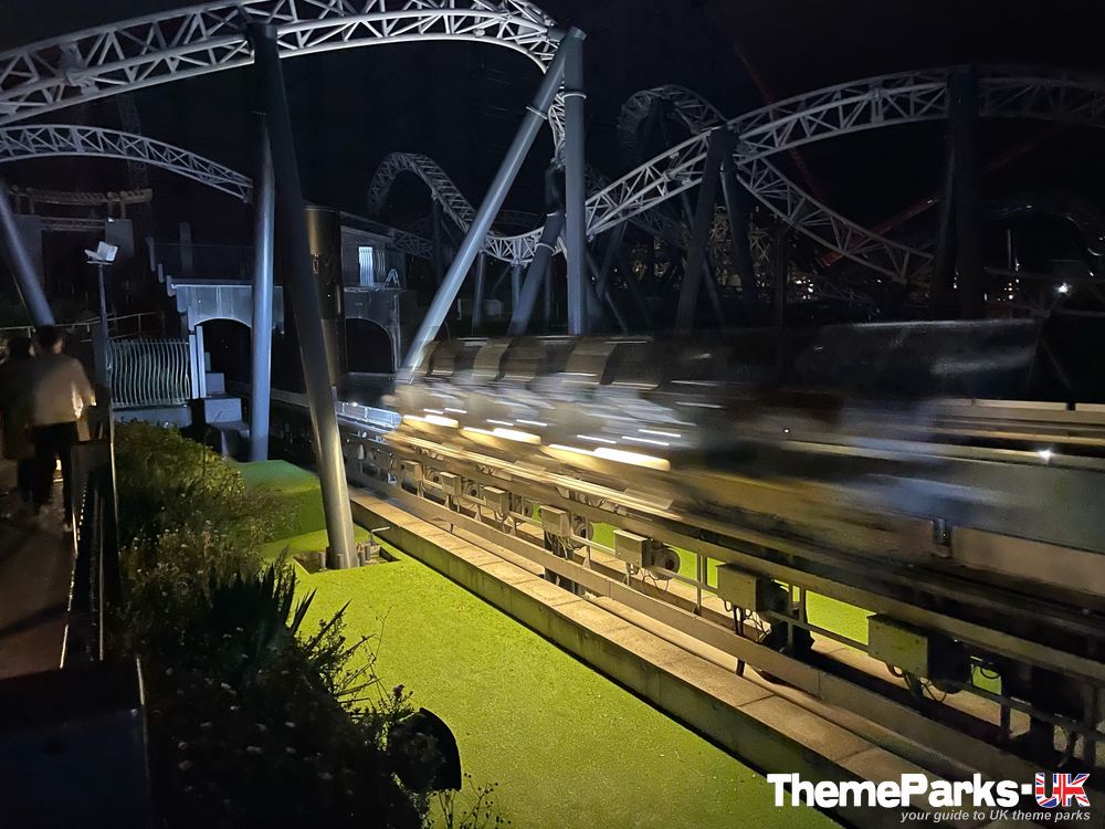 Our next attraction experience of the night would be riding ICON, but this time with a twist. On boarding the empty trains actors hand out blindfolds for each rider and insist on you wearing them. The effect is brilliant. Entering the pre-launch, an edited soundtrack is played before you are launched through the twisting and turning circuit without a clue of where you are, an this proved very effective!