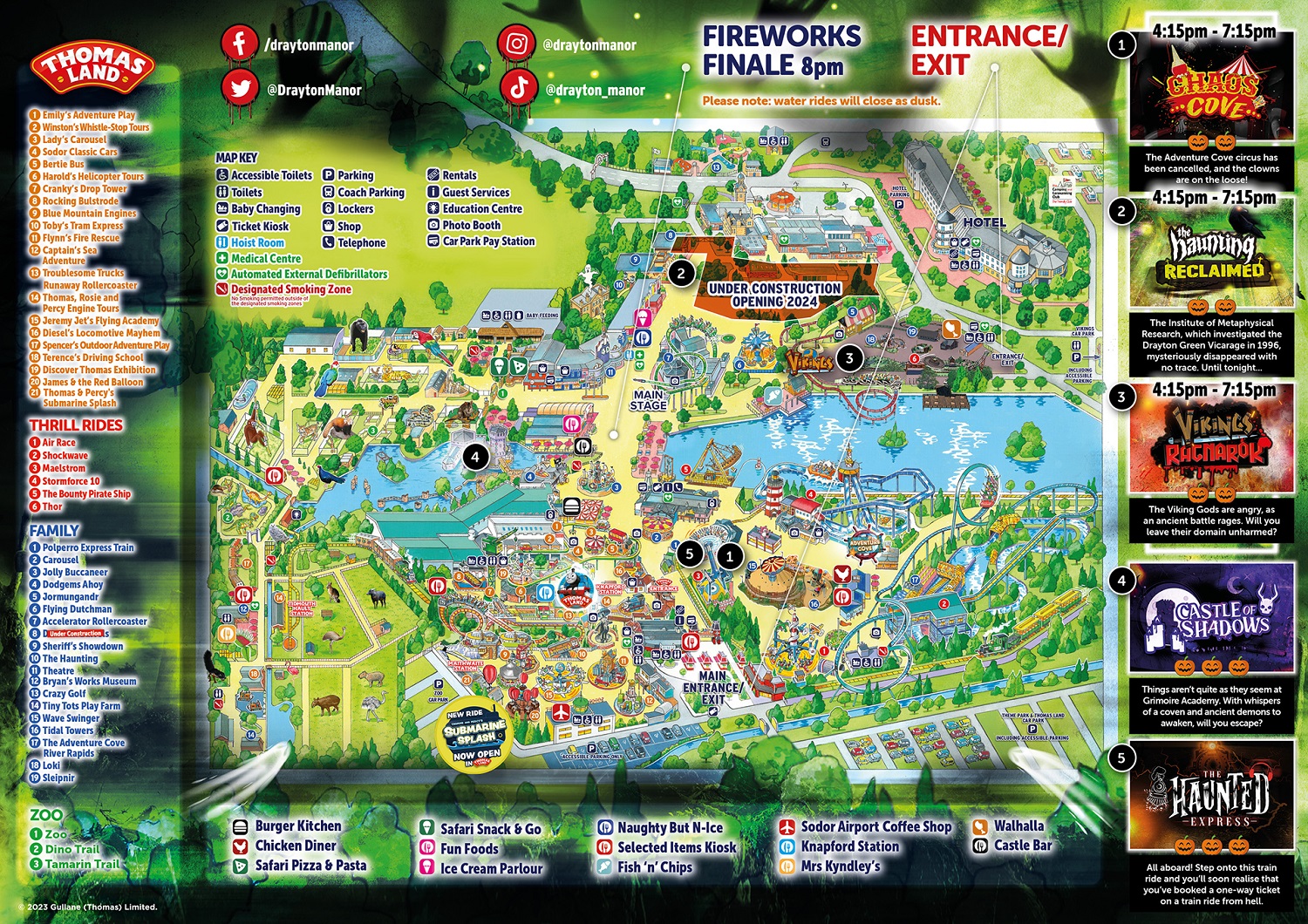Drayton Manor has created two 'scare zones', Vikings: Ragnarok and Chaos Cove, which run for 3 hours during the event, 4.15pm – 7.15pm each night.