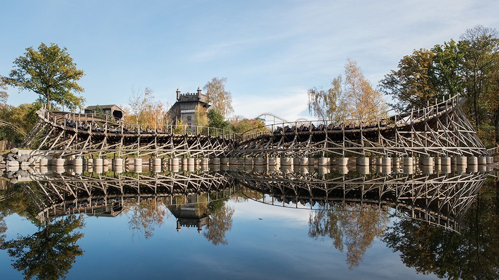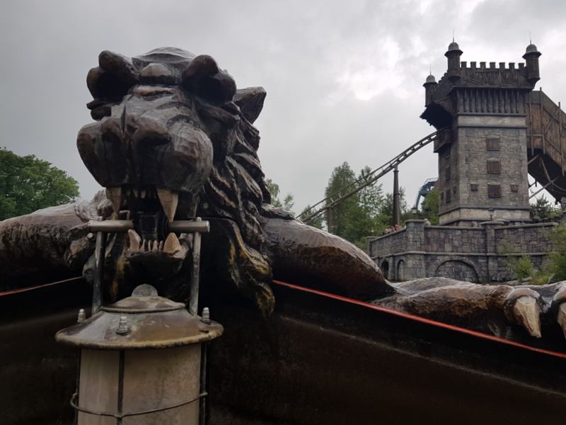 The racing wooden coaster Joris en de Draak features the two trains, fire and water, in an exciting race to the finish line and a clever celebratory moment in the station for whoever wins. It's much smoother than similar wooden coasters so we thoroughly enjoyed it.