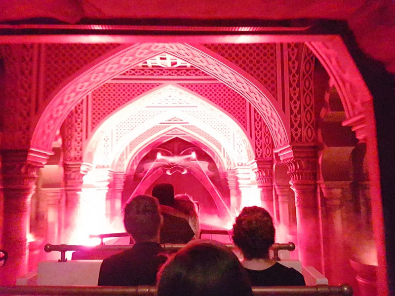 The new ride uses a trackless system, so carriages appear to glide effortlessly around the rooms and corridors of the palace, moving forwards, backwards, spinning around and even overtaking others. Such a system has already been used by Disney for their Mystic Manor, Ratatouille and Pooh's Honey Hunt attractions and also by SeaWorld for their Antarctica: Empire of the Penguin ride, but it's still very unusual to see and is particularly effective here.