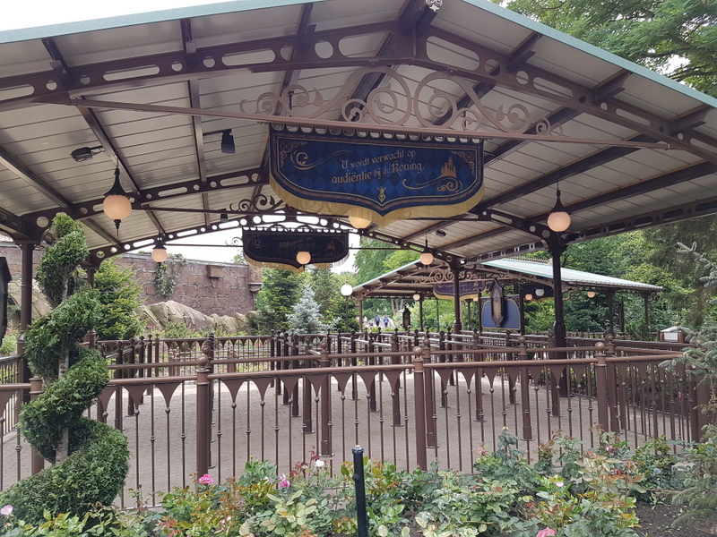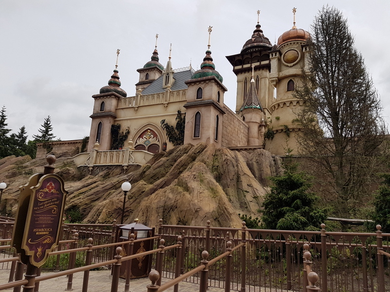 The new attraction is located in the heart of the theme park, acting as a centrepiece at the end of the Pardoes Promenade. A charming palace sits atop a cliff, with a plaza and water fountain beneath it. The queue winds around the side and up to the entrance, with some boredom busting features along the way.