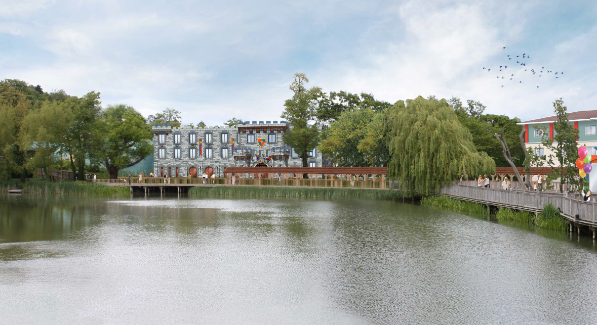 The proposed extension would replace the existing Dino Safari ride and toilets and be located next to the existing LEGOLAND Resort Hotel. There would be 61 new ‘Premium’ family bedrooms (a net increase of 59 as two existing hotel bedrooms will be lost) in a 3 storey castle themed building. There would also be a new decked seating and play area overlooking the lake.