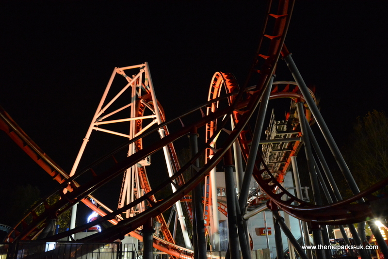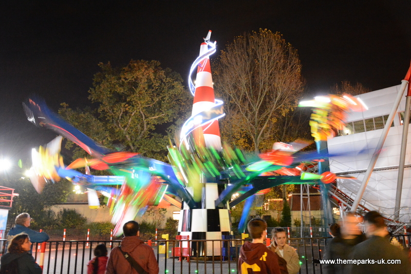 After the display we enjoyed the opportunity to ride some of the theme park's rides in the dark, including the UK's only stand-up roller coaster Shockwave and the impressive gyro swing ride Maelstrom.