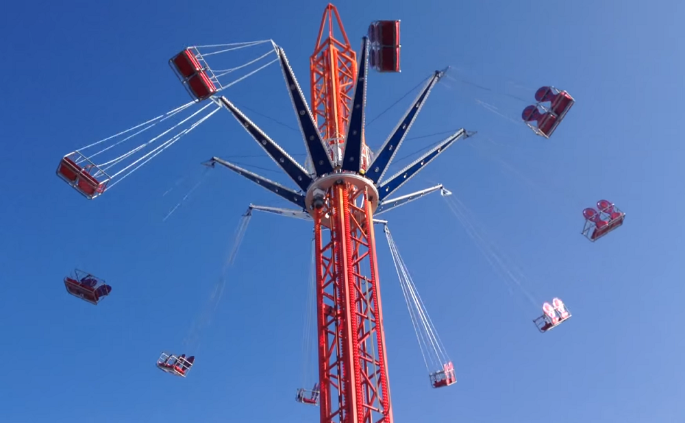 The ride spins like a normal chair-flyer but also races up to the top as it is spinning. Riders are treated to wonderful views and a series of ups and downs as they spin backwards and forwards during the experience.