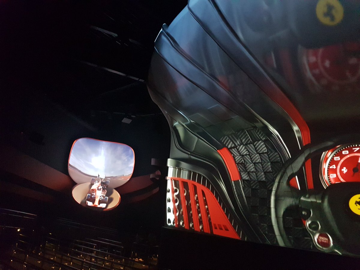 The 10 simulators of Racing Legends sit in front of a huge Omnimax screen, here you take a ride with Ferrari F1 cars around the world's greatest Formula 1 circuits. It uses a similar ride system to attractions like The Simpsons Ride at Universal Studios.