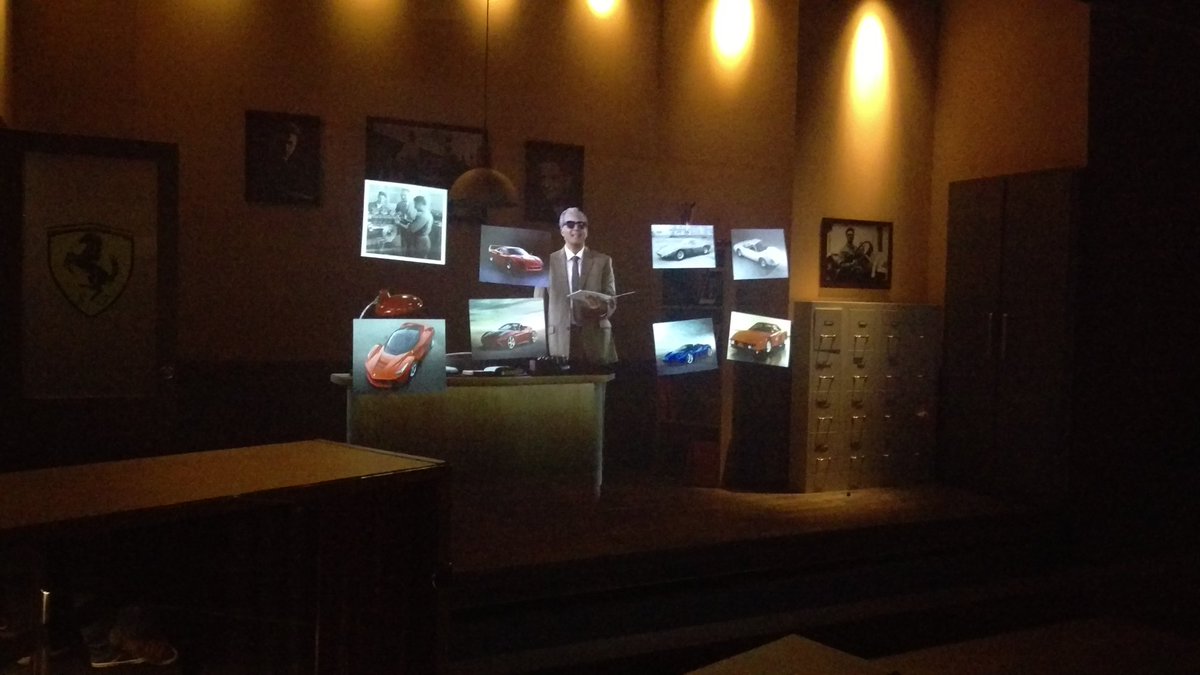 The shared pre-ride area features a gigantic video wall, and GT and F1 cars with projection mapping, followed by further walkthrough sections using holographic and other technology to bring the history of Ferrari to life.