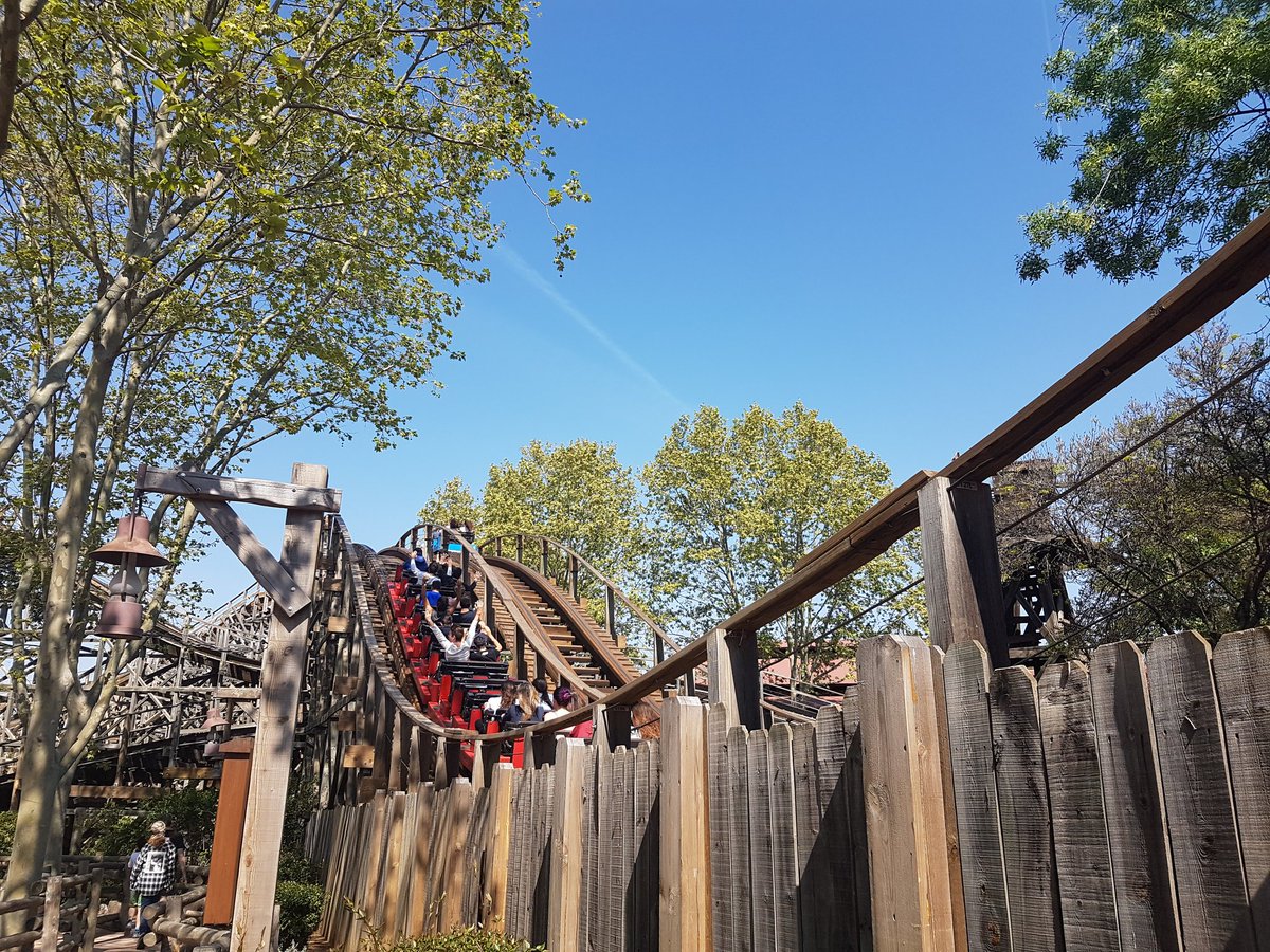We won our race on Stampida, a thrilling racing wooden coaster. The smaller coasters at PortAventura are Tomahawk and El Diablo, and they are both really good fun.
