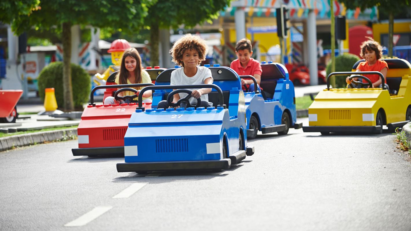 Children aged 6-13 years can get behind the wheel at the LEGO City Driving School which is fun, exciting and gives them a real sense of achievement. After a road safety lesson, drivers negotiate traffic lights, roundabouts and other cars to earn their very own driving licence!