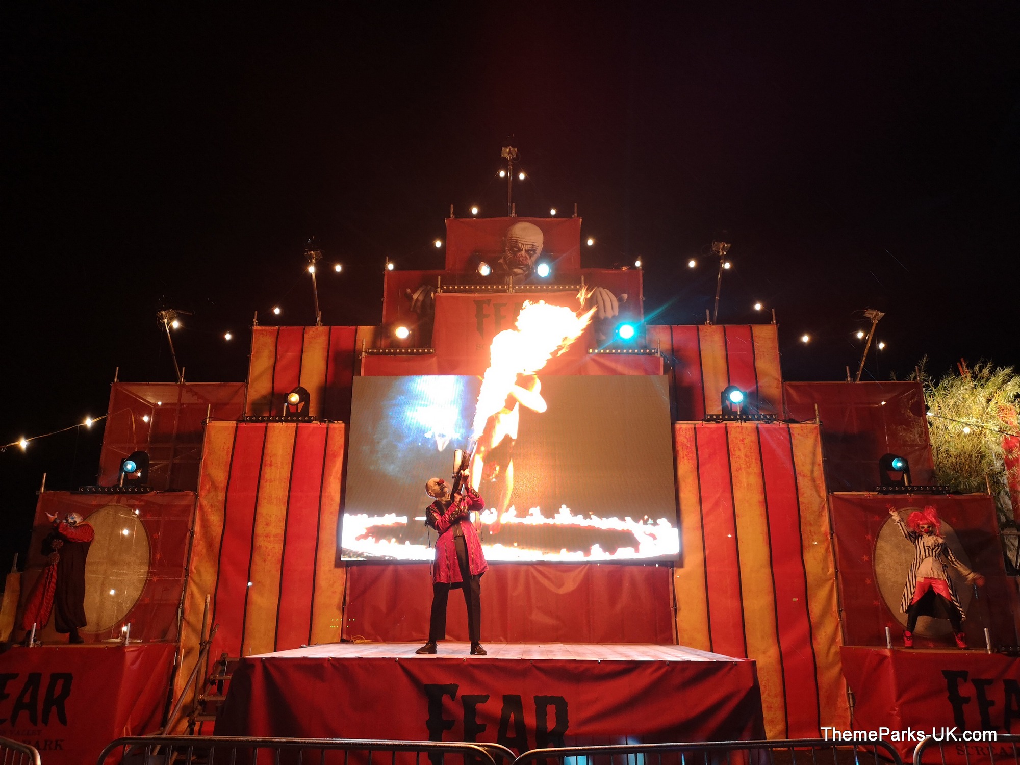 In addition to the scare mazes the event includes interactive shooting experience KILLZONE, street theatre, a fire show, games, fairground rides, food and bars.