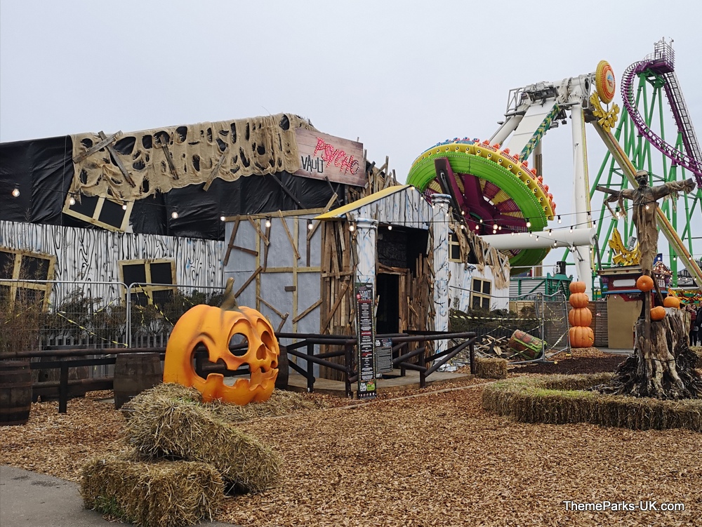 Psycho Vault - A labyrinth hidden beneath the former Psycho Mansion has been uncovered, the hideout of infamous serial killer Edward Slice and his band of murderous cohorts – the Psycho Vault has been breached, and you are its latest victim! You will be crawling on your hands and knees in the longest and most effective tunnel section we've experienced in a scare maze. The dramatic finale will have you running out screaming!