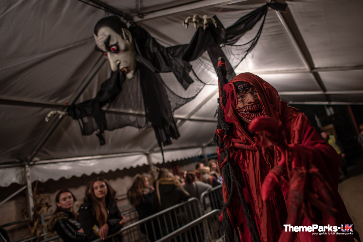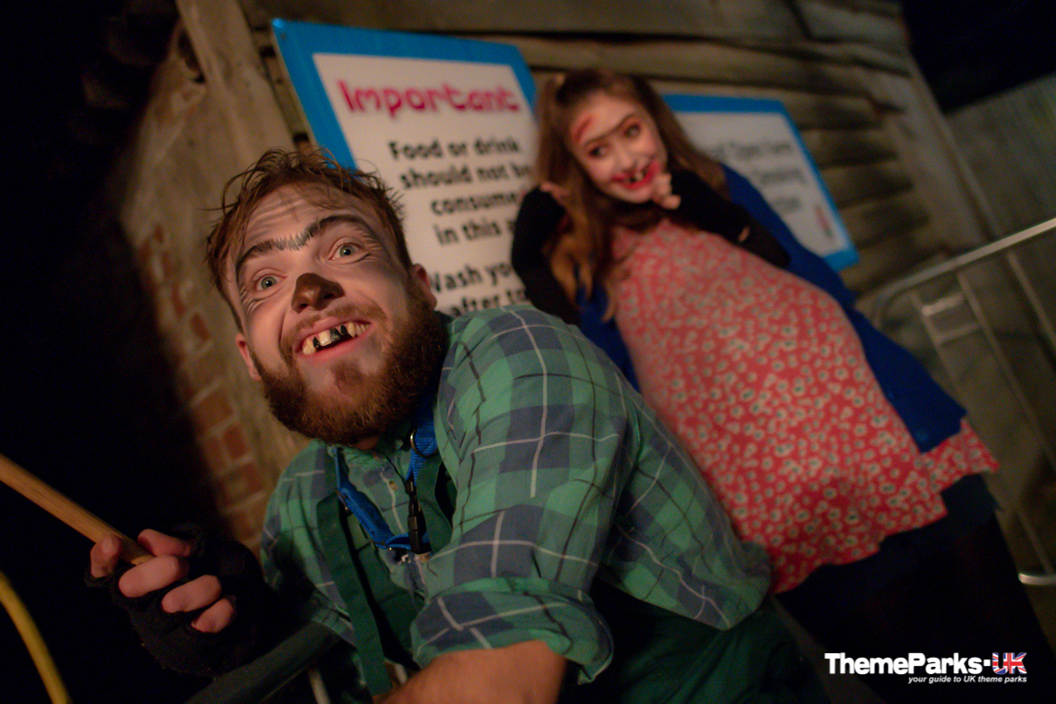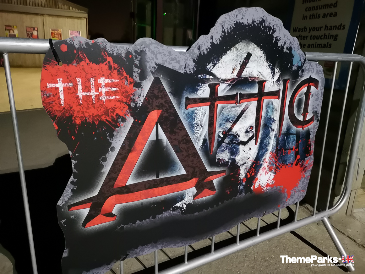 - The Attic (New for 2018) - Scare Factor 8. This extensive horror maze is set across two levels, with a lengthy build up to ascending the steps up into The Attic. Once upstairs the action really intensifies and it's quite disorientating - so much so that our group took a wrong turn and ended up in a hidden passage before realising our error and going back. Unfortunately the downstairs portions were very light on actors, except for the final room which provided some very personal interaction!