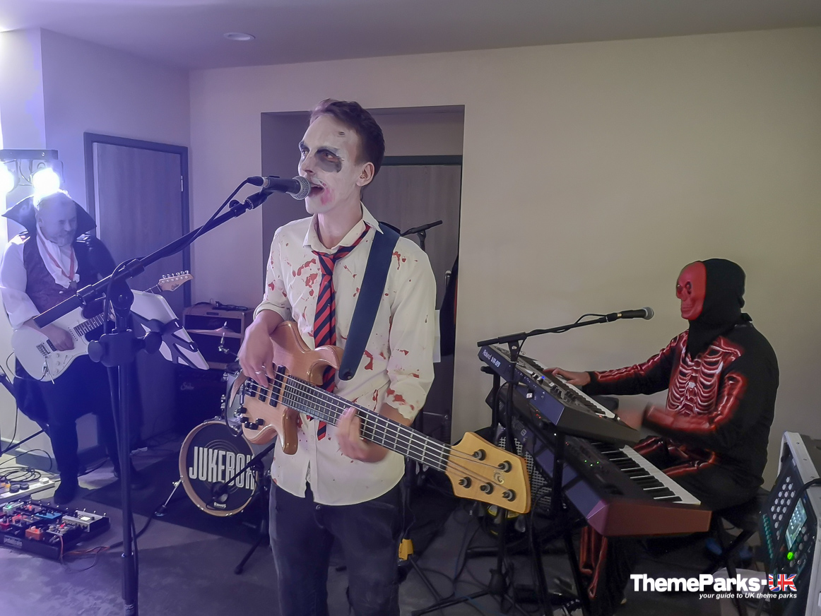 There was a great selection of food on offer (making use of the farm's normal cafe rather than relying on temporary food trailers), drinks were available from the Hearse and Hound Bar, and we enjoyed some good live music by the resident band. We were also kept entertained by the roaming characters, which included a family of inbred hillbillies, as well as a rather gruesome monster!