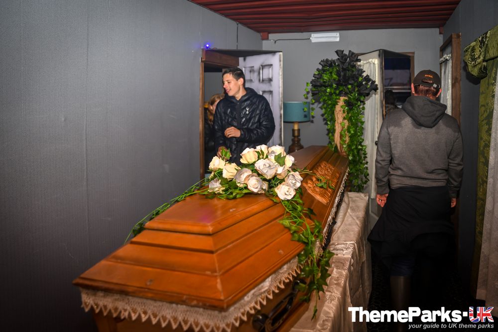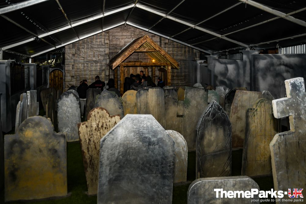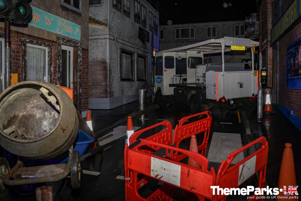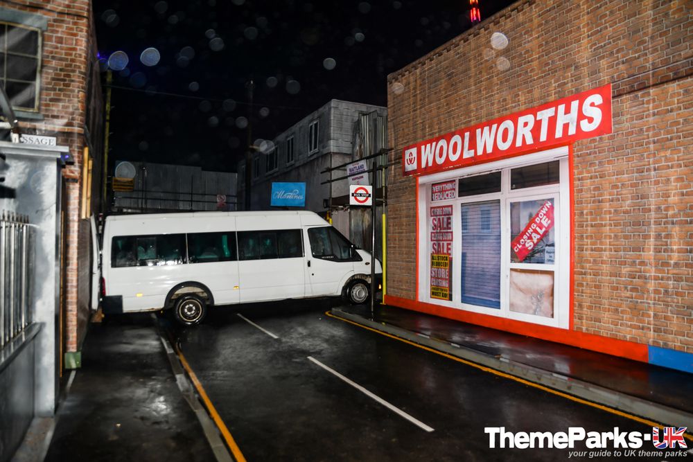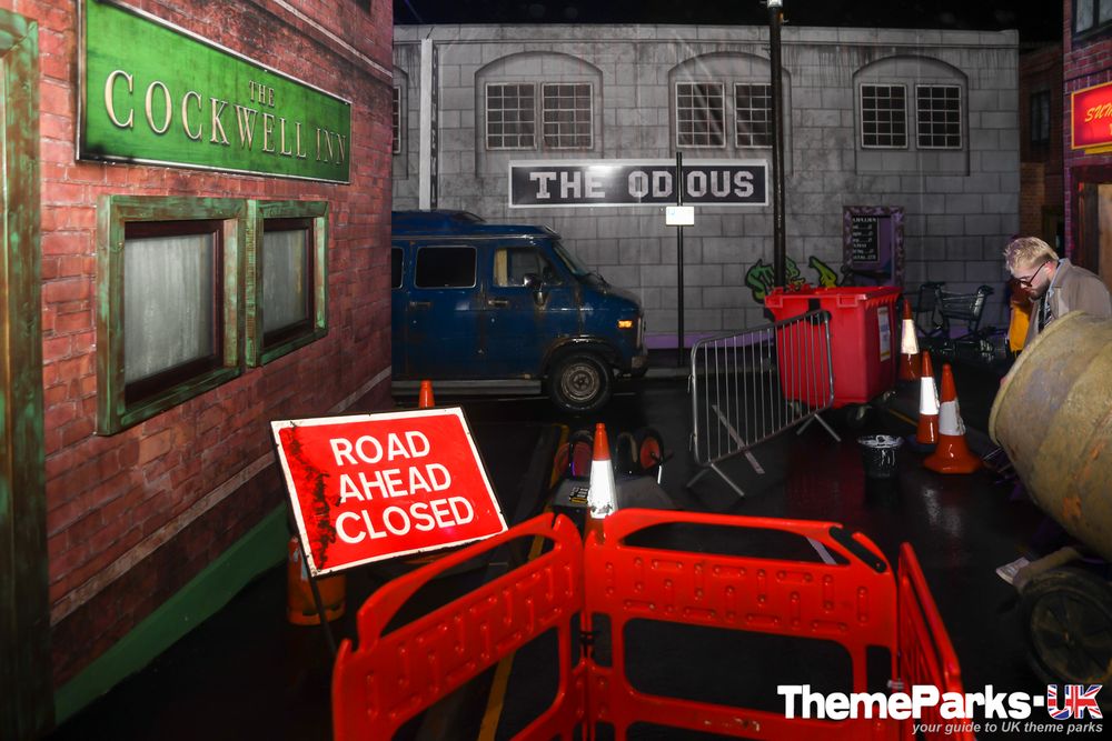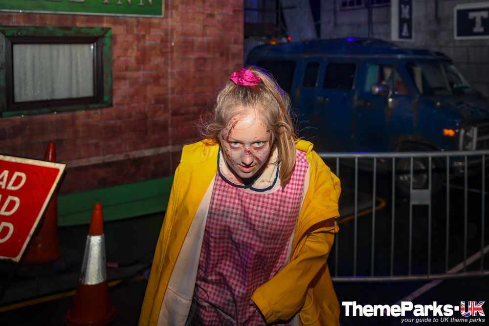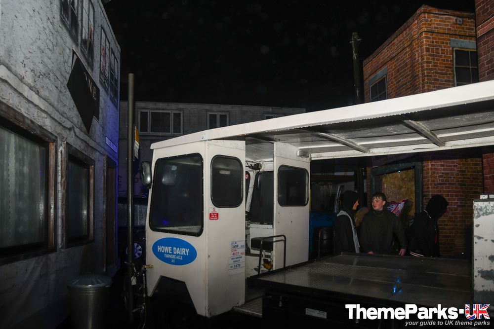 To create the new scare attraction, Tulleys has built a huge indoor and outdoor set complete with a pub, newsagent, greengrocer, hairdresser, video rental, takeaway, cinema, public toilets, church and a funeral home. In the streets there is a milk float, minibus, van and a hearse, all on tarmacked roads with pavements, traffic lights and a phone box.