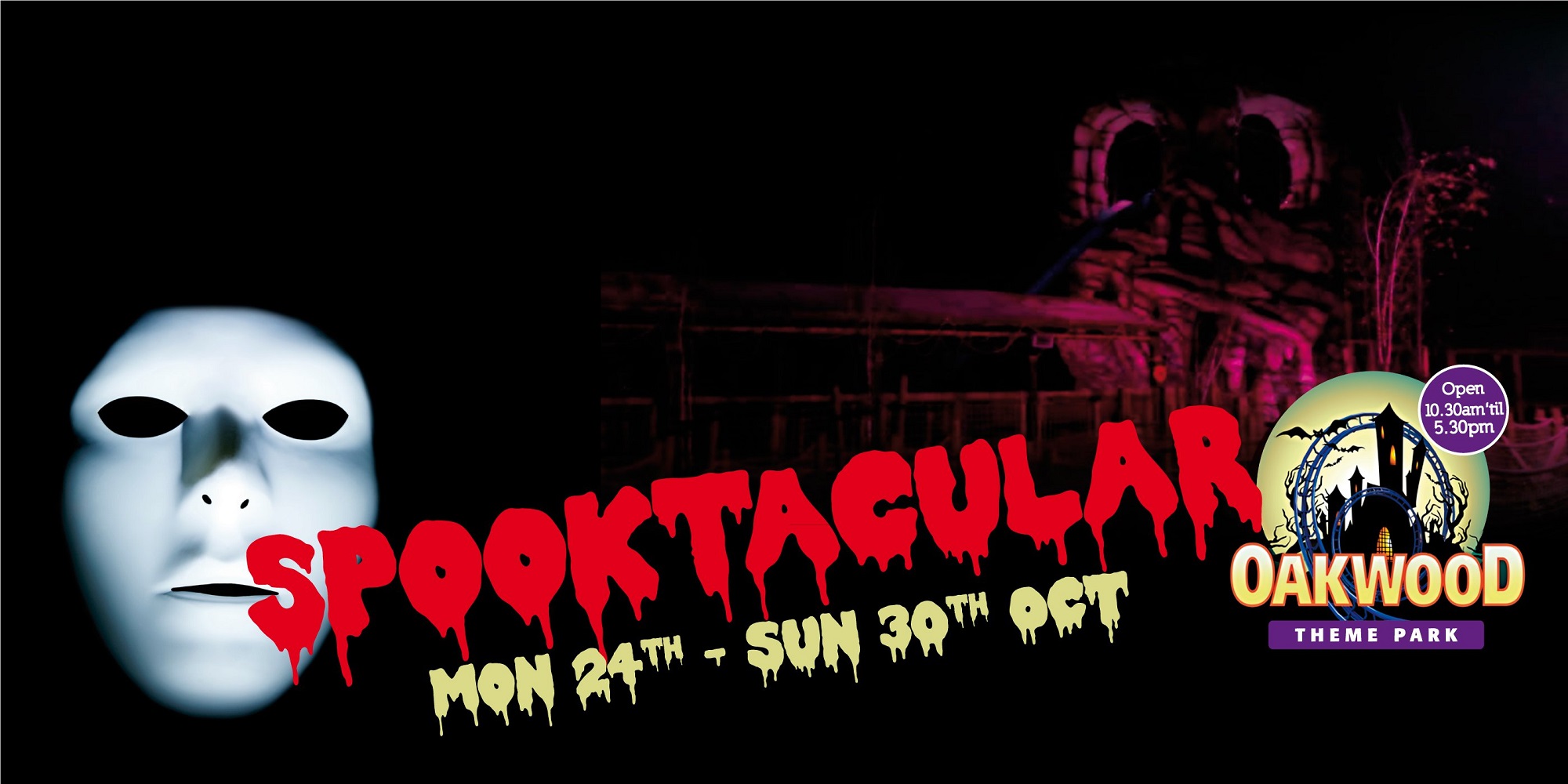 Oakwood is being transformed in to a Scream Park to celebrate Halloween (October 27th - 31st) with scary family fun for all ages to enjoy. The Pembrokeshire park will be presenting a new interactive live show narrating the story of The Ghost of Skull Rock including laser and pyrotechnics – perfect for all the family. There will also be a children’s pumpkin trail, creepy characters in the Spooky 3D ride, live music, and a Theatre of Nightmares set in an abandoned theatre for adult visitors.