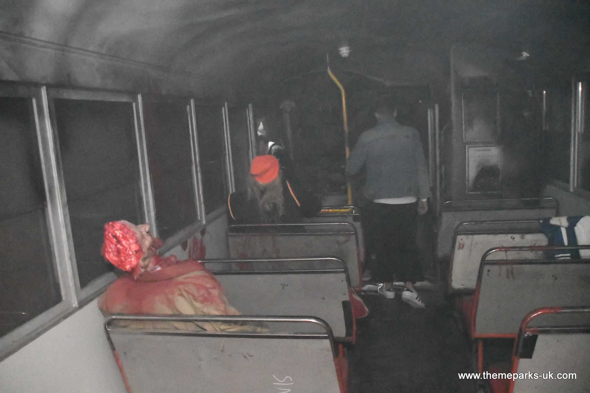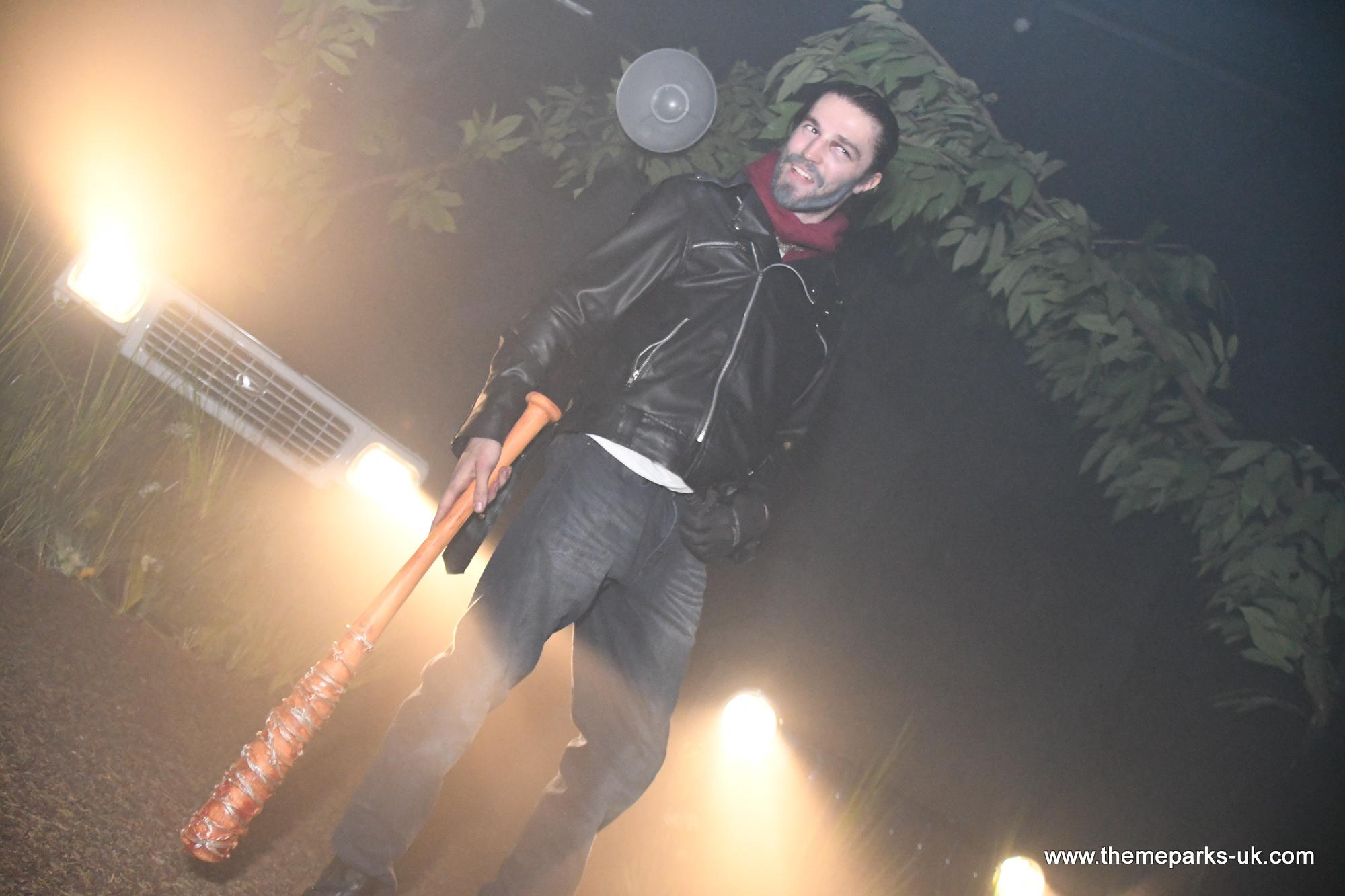 Our first stop was The Walking Dead: Living Nightmare, an indoor free flow horror maze where you must try to escape from the notorious Negan. It is located in the former home of the Cabin in the Woods and although absolutely no effort has been made with the exterior of the attraction, once you are inside it has been completely transformed. We found it to be fully immersive with large scale sets and superb attention to detail throughout. Fans will no doubt love all the carefully recreated scenes from the hit TV show, including the hospital, prison and school bus. We particularly liked the dramatic opening sequence, fully acted to setup the story and with an effective scare.