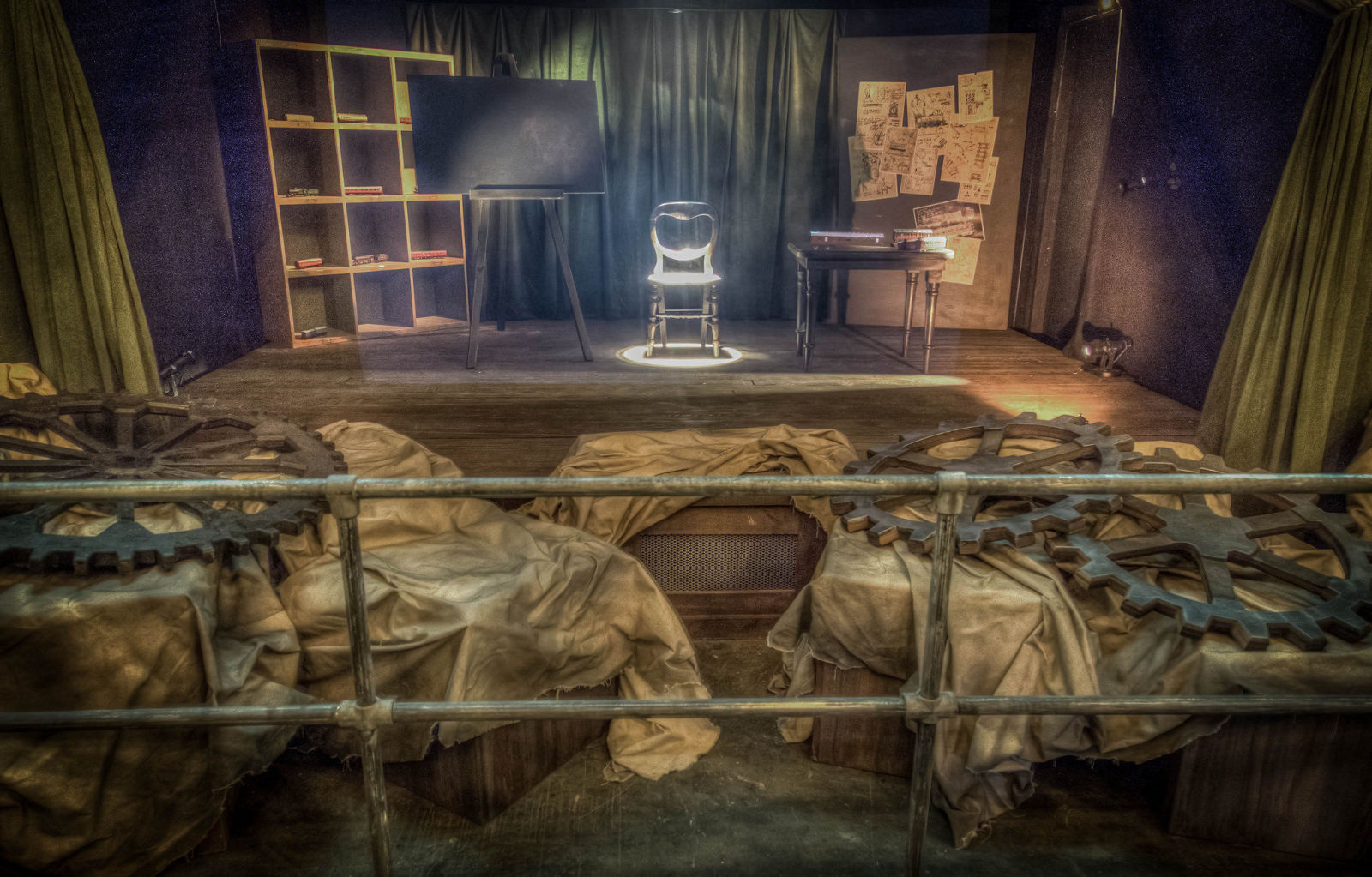 Derren Brown’s Ghost Train is housed within a purpose built warehouse that encompasses 2306 square metres and is tall enough to house nearly three double decker buses. The main centrepiece of the attraction will be a 20 metre long, four and a half metre high, seven tonne Victorian train carriage that is suspended in mid air over three metres above ground by iron chains. A carriage which passengers enter via a metal bridge, and where the mind-bending journey begins in earnest in what appears to be a large disused Victorian warehouse.