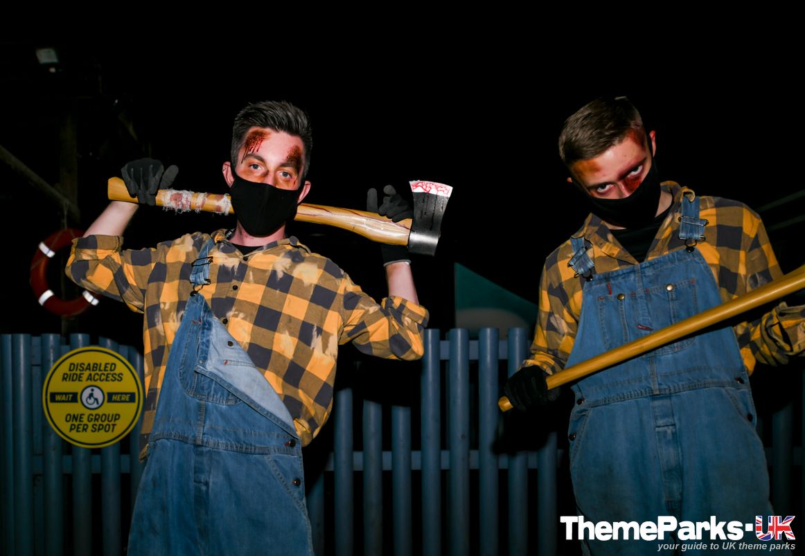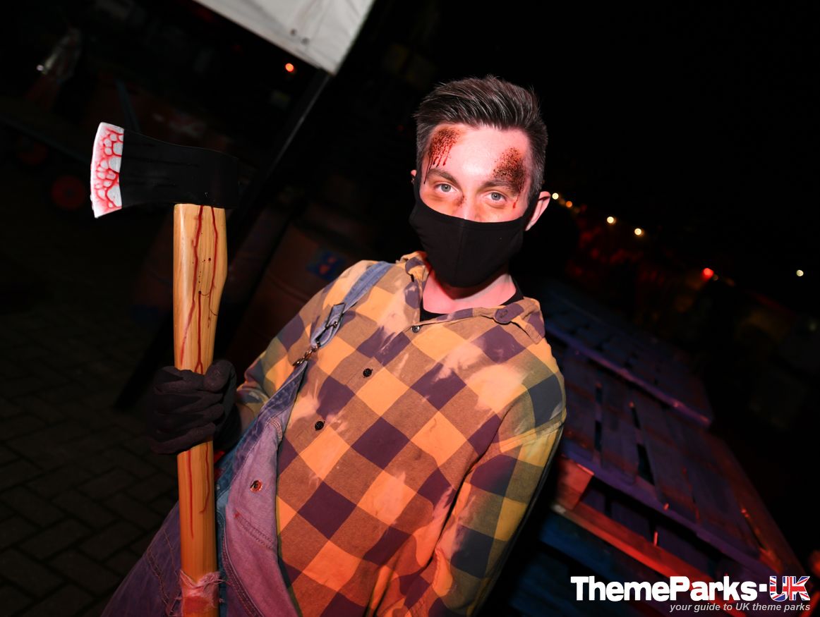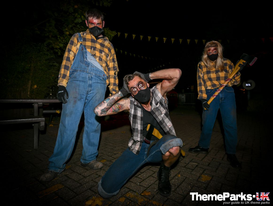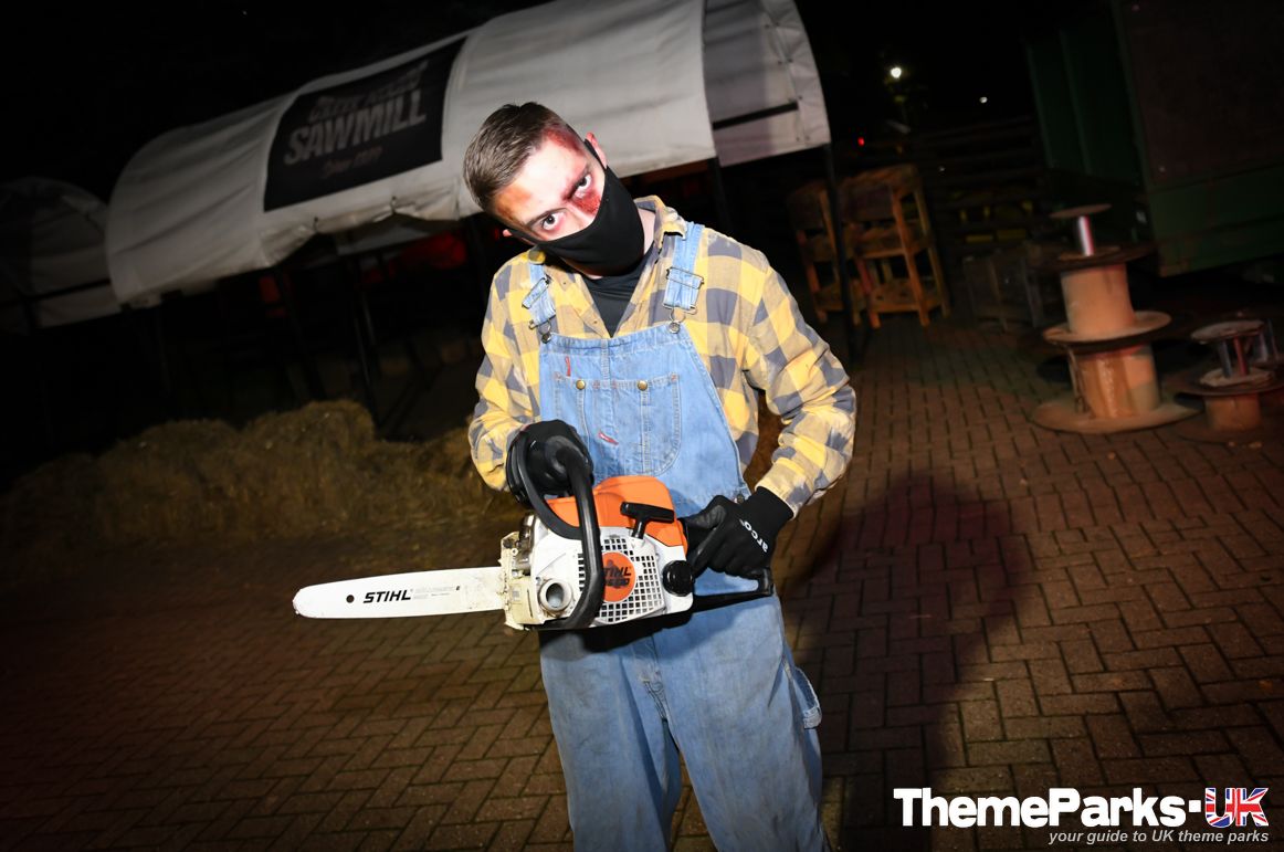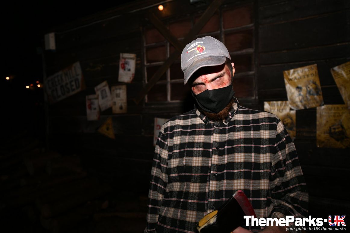 This is a genuine scare zone and it includes just as many actors and props as the two mazes. It's actually not far off being a scare maze, with a one-way route through a highly themed area and superb interaction with the guests. The characters from last year's Creek Freak Massacre scare maze have now escaped their Saw Mill and they do not like city folk wandering through their town. The actors are fantastic, both intimidating and at times aggressive, doing all they can to scare the living daylights out of guests... and with great success!