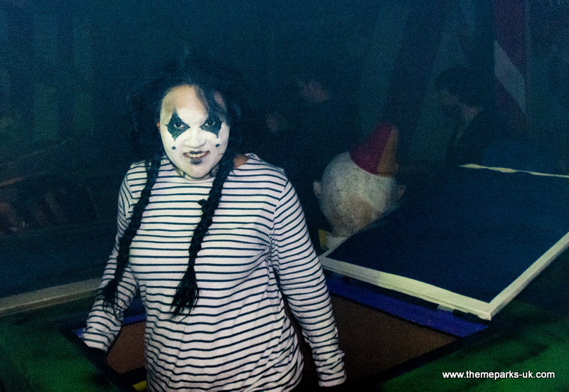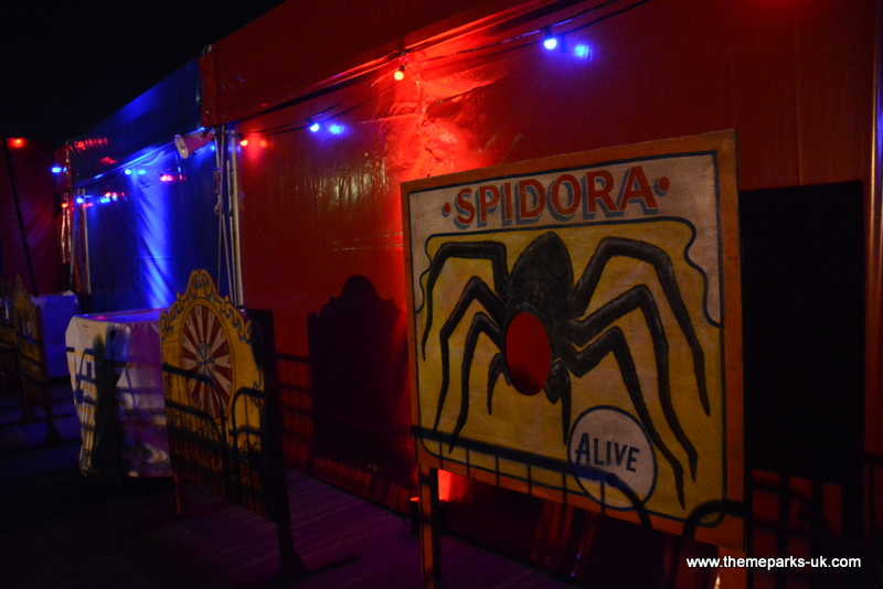 Last year's other new addition The Big Top looked great from the outside as a collection of carnival style tents around Amity Beach with themed entrances and other props, but it didn't get rave reviews for the experience inside. This year it has moved to a much less appealing location, all in one marquee and with less theming outside, but inside it has been given some new scenes and other enhancements. In addition to the fortune teller, strobe maze, a clown's dressing room and fun house sections there is a new area featuring props from the history of the park and you are still chased out of the maze by a maniac with a chainsaw at the end!