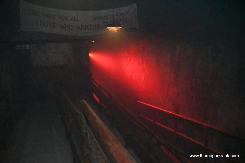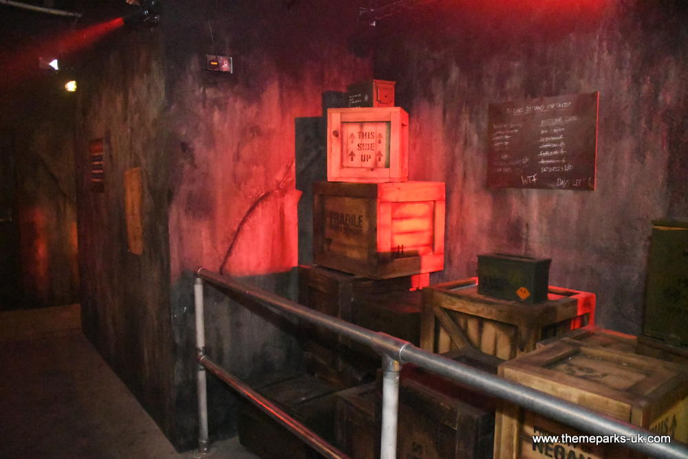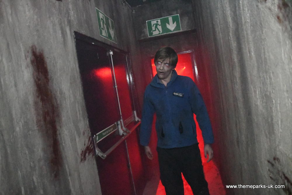 Further techniques commonly used in live action horror maze attractions are used and you encounter some staff that have become walkers!