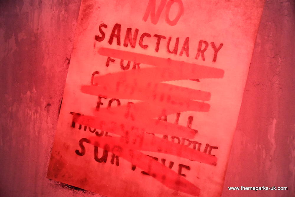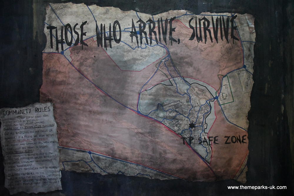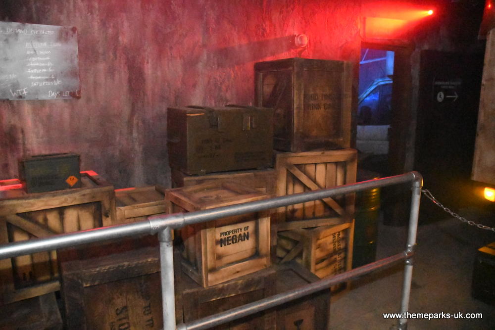 On arrival at the new Thorpe Park Safe Zone you enter a holding bay for registration, here a pre-show introduces the backstory to the experience and you are informed of an imminent invasion of walkers.