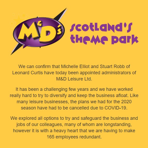 We can confirm that Michelle Elliot and Stuart Robb of Leonard Curtis have today been appointed administrators of M&D Leisure Ltd.