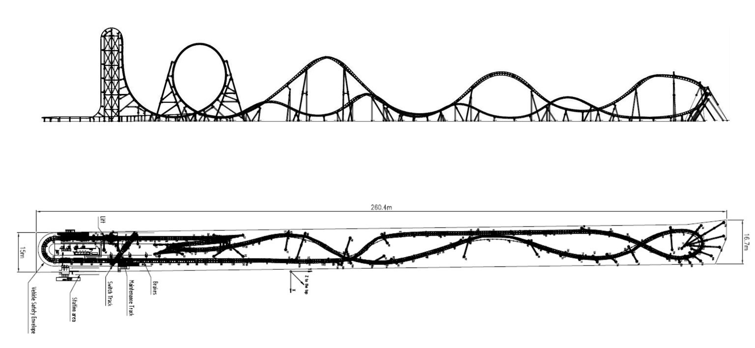 During the ride, guests will experience 4 inversions; a 98 ft tall Loop, 82 ft tall Zero-G Roll, Dive Loop and Corkscrew.