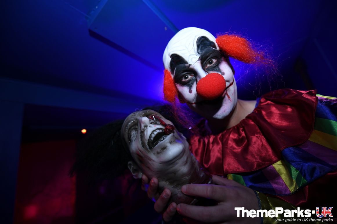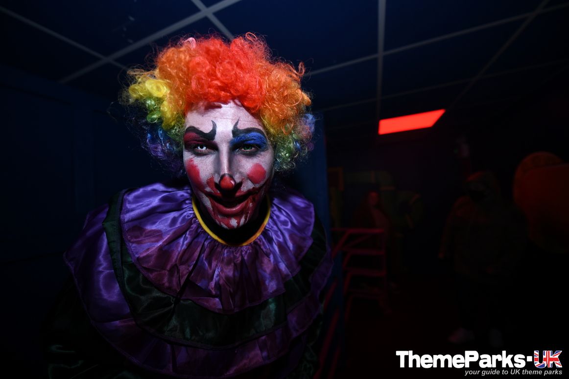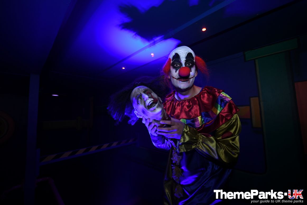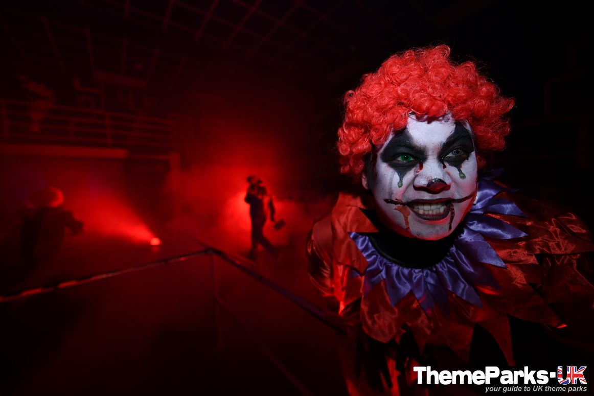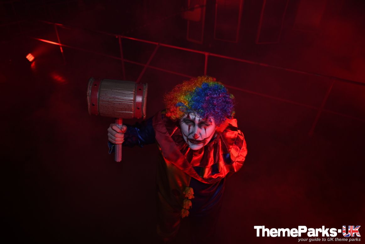 The park’s Fun Factory attraction has become the Not So Fun Factory scare maze, packed with crazed clowns, flashing lights and lots of smoke.