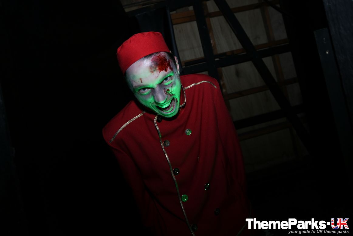The scare actors in the Haunted Hotel ghost train include a receptionist, bell boy, evil maid and psycho guest!