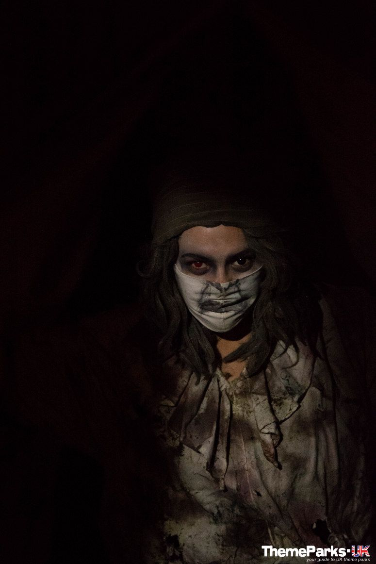 Occupying the space of former scare maze Torchure but with a completely new story, venture into the passages, dungeons and catacombs below the park. The level of terror is maximised by the intensity of the live actors, who take advantage of the extremely low light levels in this attraction. We loved the dramatic finale where we finally encountered the spirit of the witch.