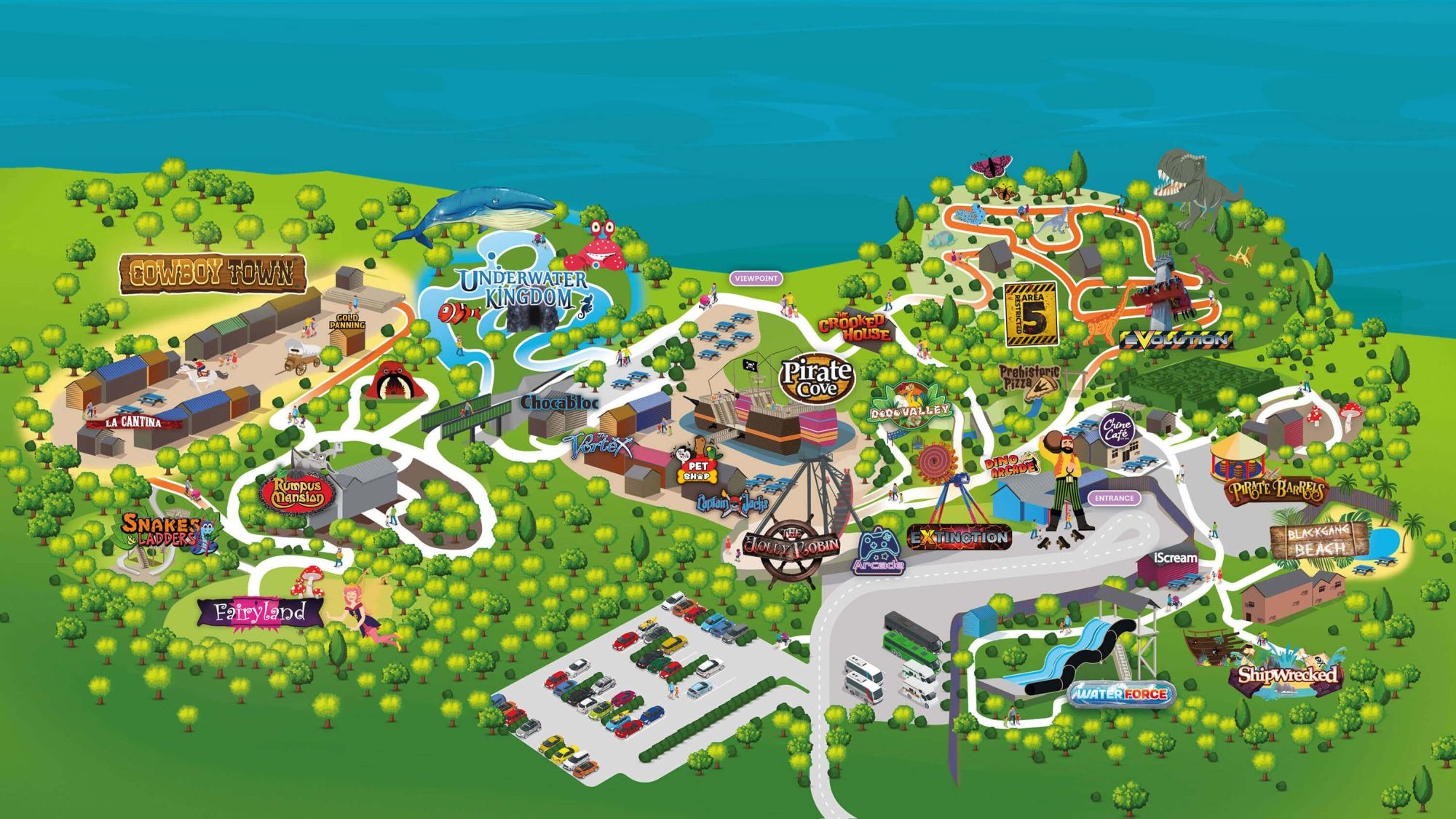 Discover the Land of Imagination with more rides than ever before. Experience the Isle of Wight’s only upside down thrilling adventure, wrangle dinosaurs in Restricted Area 5, confront outlaws in Cowboy Town, hit the high seas in Pirate Cove, and cast enchanting spells in Fairyland.